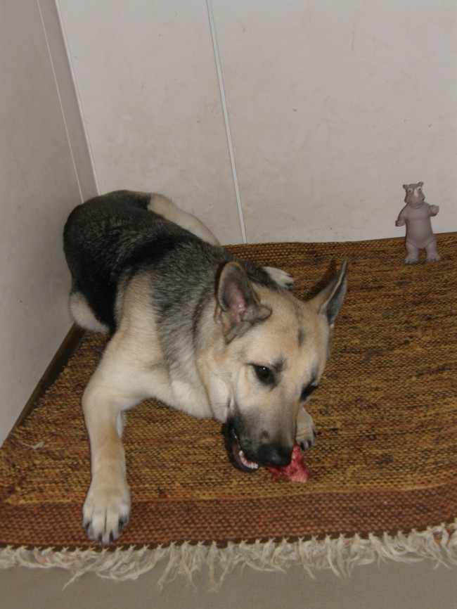 Юта наслаждается свежей косточкой.